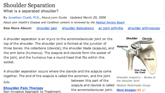 Here’s what the x-ray revealed: An AC separation. No, it was not dislocated (nice try amateur orthopedic surgeons!). No, it was not broken, you part-time physical therapists.