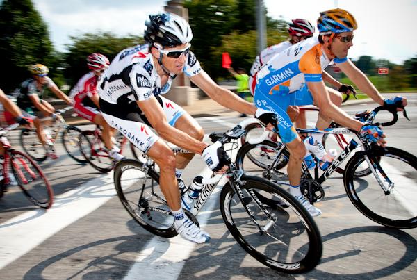 We almost got a pic of George Hincapie, but he was too fast. Still, this pic does tell a story, of sorts: